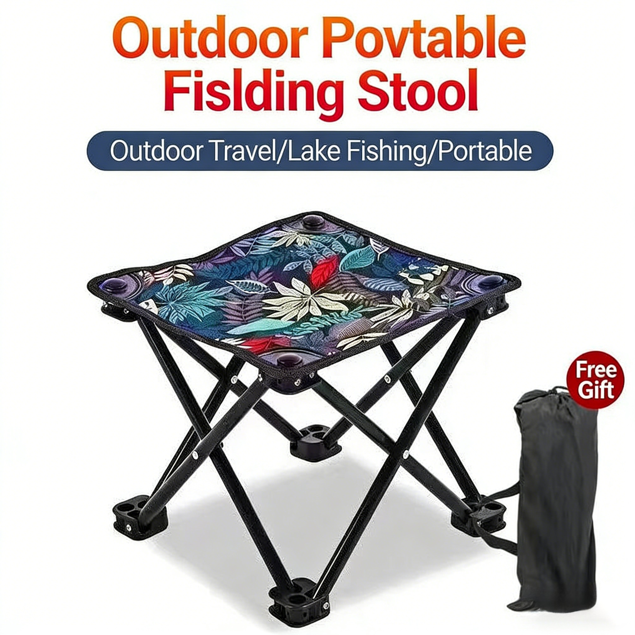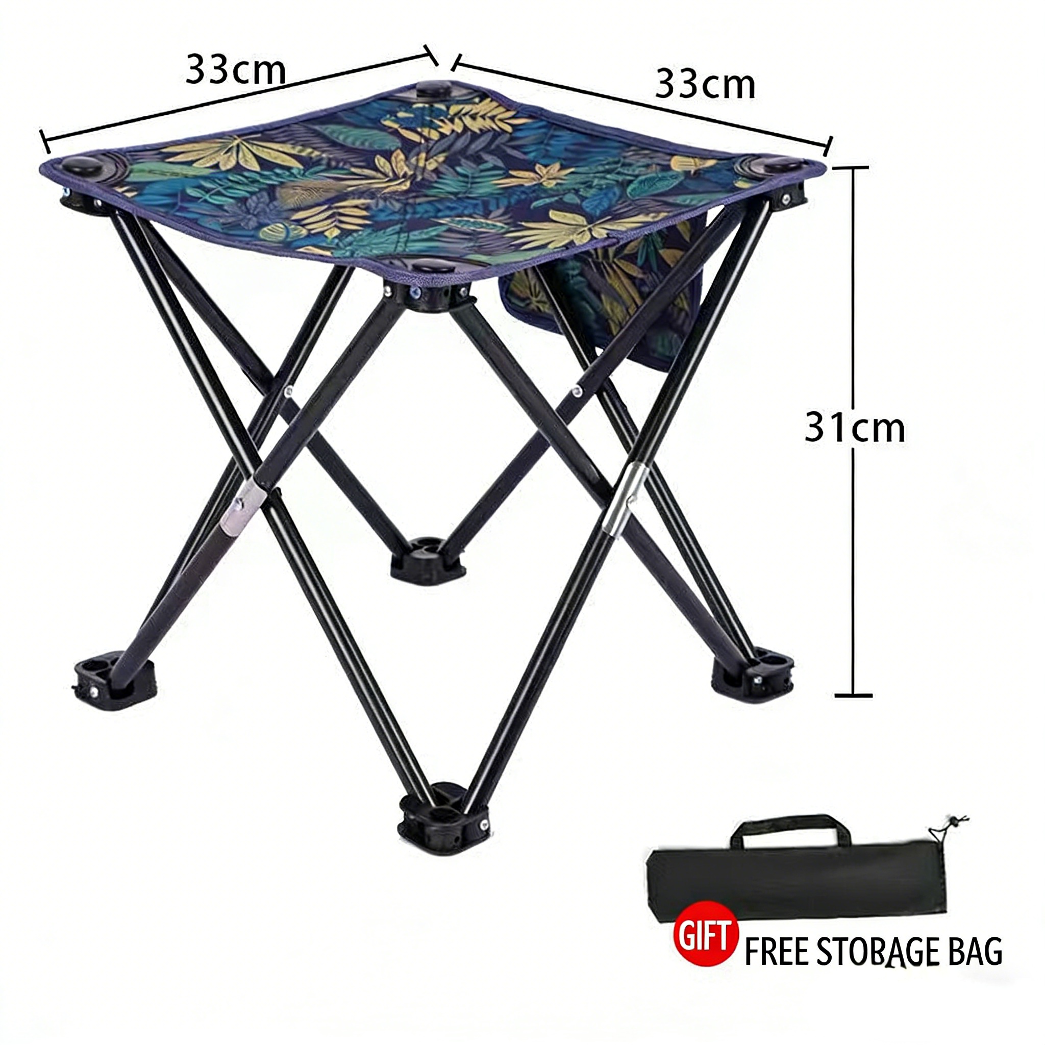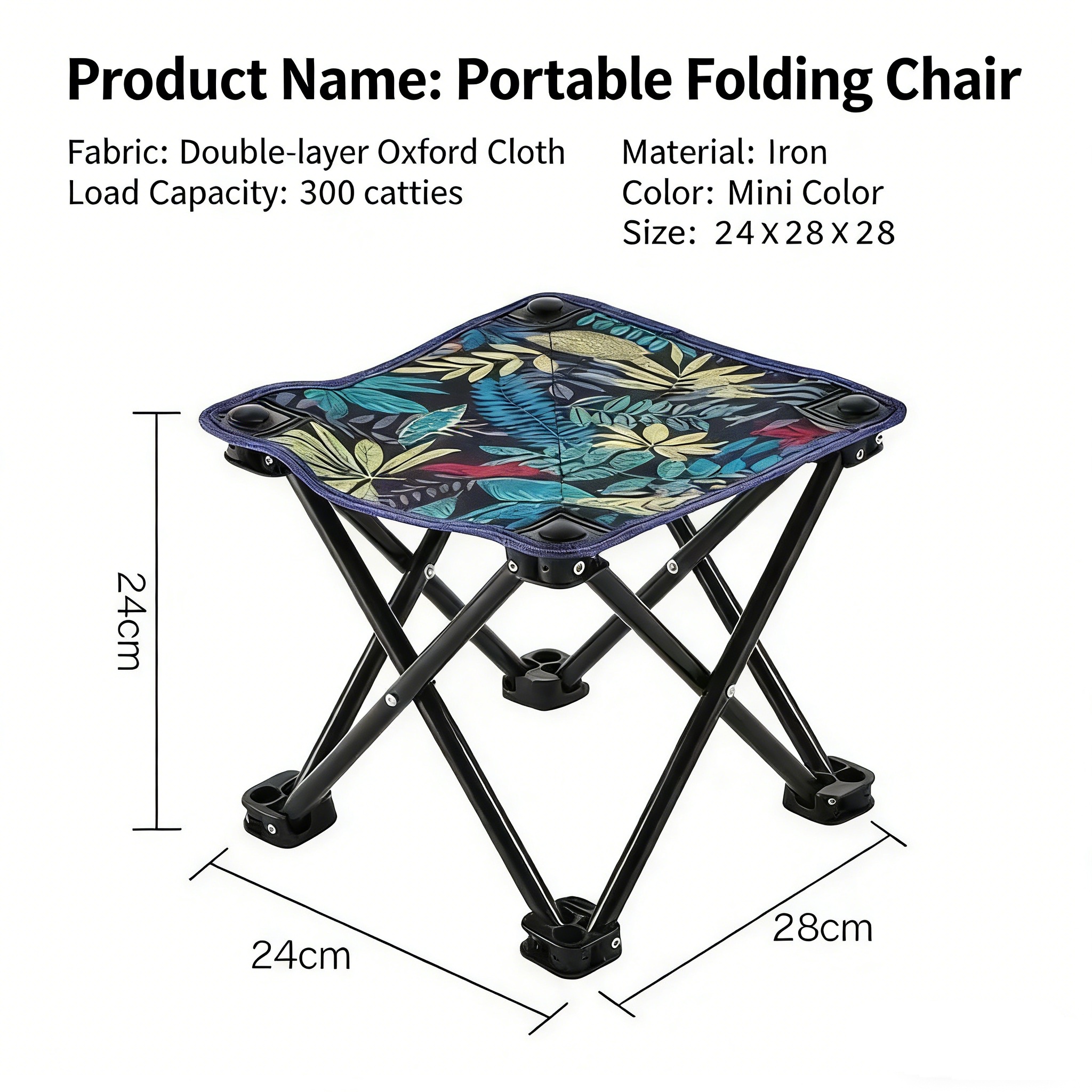 Measuring just 24×28×28 cm, it folds down to the size of your palm and comes with a storage bag, allowing you to tuck it easily into a backpack or car trunk for true “take-it-anywhere” convenience. The tropical plant print in a camouflage-inspired palette breaks the monotony of traditional outdoor gear, boasting a fresh, retro aesthetic that’s both stylish and eye-catching—perfect for Instagram-worthy photos.