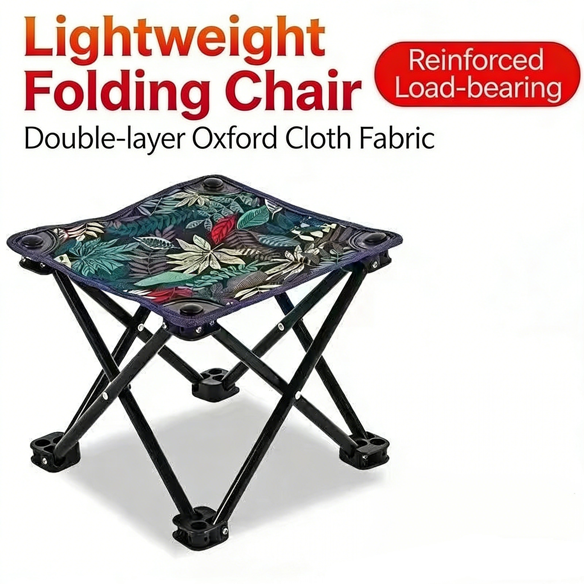 This portable folding stool is a practical companion designed for outdoor adventures and daily home use. Built with a sturdy iron frame, its cross-braced structure and non-slip footpads deliver exceptional stability. The double-layered, thickened Oxford fabric is wear-resistant, wrinkle-resistant, breathable, and skin-friendly, with a tested weight capacity of up to 300 pounds—providing reliable support whether you’re sitting for long periods or placing heavy items temporarily.